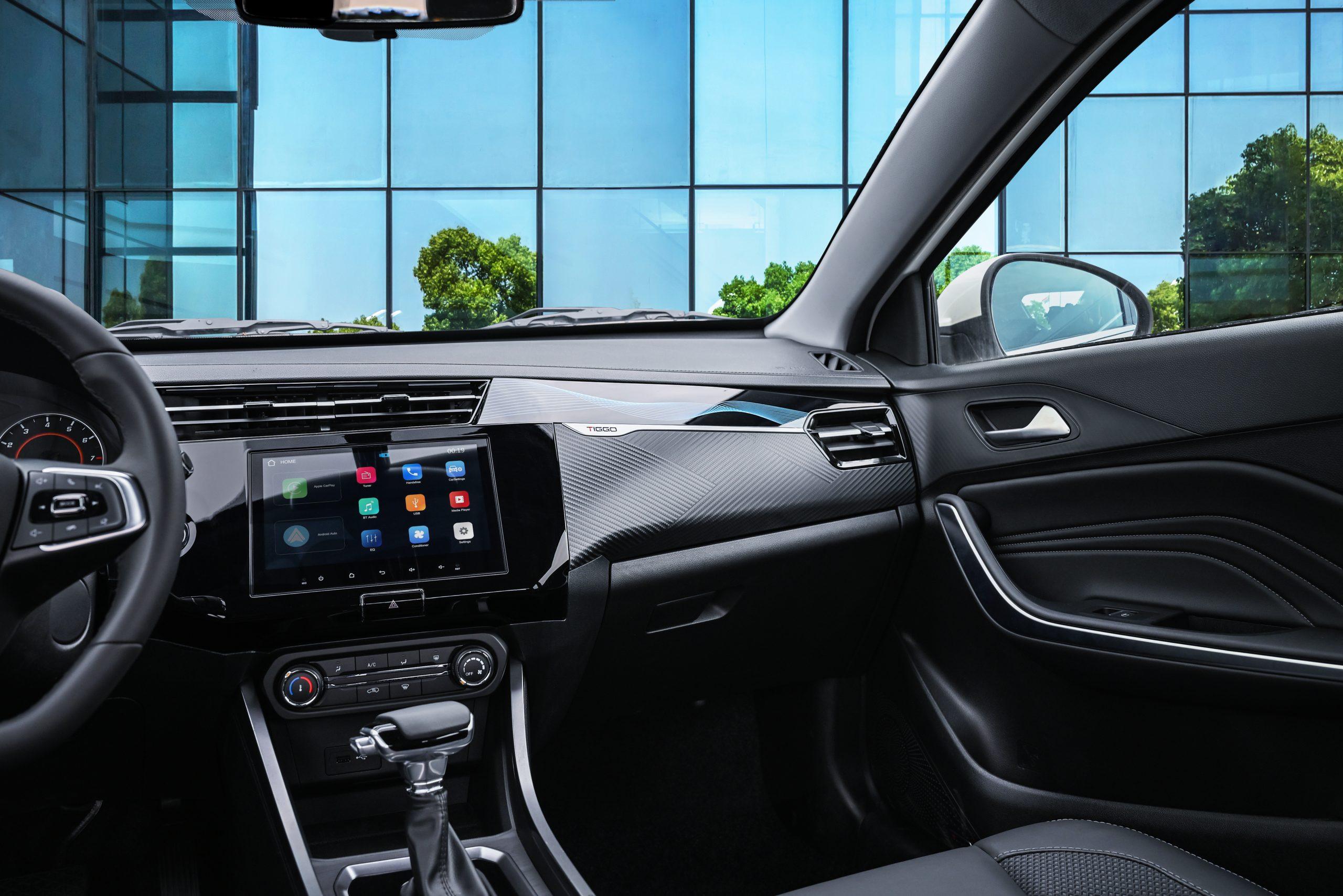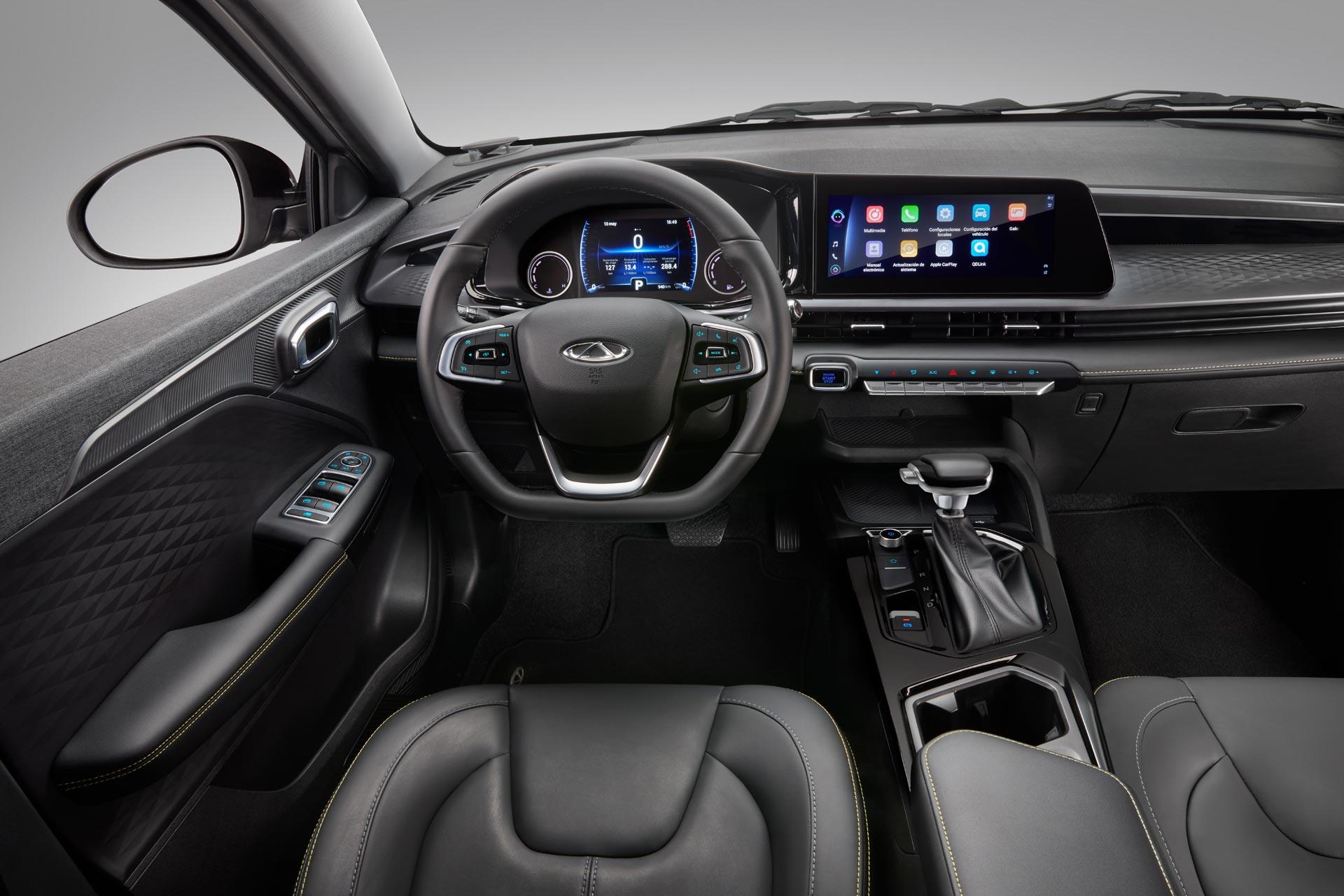 El TIGGO 2 Pro cuenta con un interior cómodo y funcional, con tapizado combinado en tela y cuero, volante multifunción tapizado en cuero ecológico, pantalla táctil multimedia de 9 pulgadas, climatizador automático, y alzacristales eléctricos one-touch para las cuatro puertas.