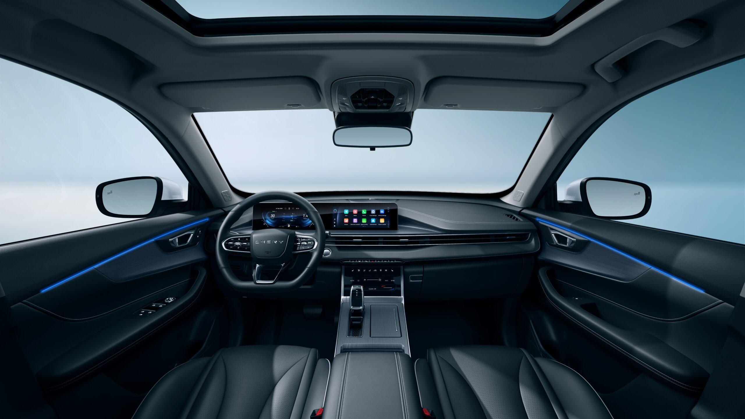 El TIGGO 4 | CSH ofrece un interior moderno y cómodo con tapizado en cuero, volante multifunción tapizado en cuero ecológico y regulación eléctrica del asiento conductor. Además, cuenta con un techo solar panorámico eléctrico y una iluminación ambiental multicolor que aportan sofisticación y confort.
